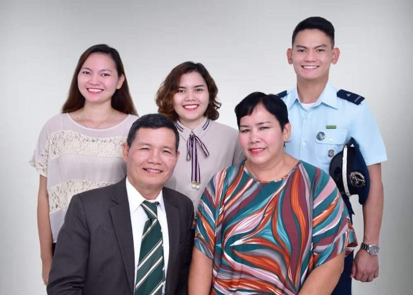 Photo of Dr Fritz with his family, (left) Rhoda Myrrh Tan Cobrado, Joanna Gold Tan Cobrado, 1LT Issachar Frankincense Tan Cobrado, (wife)Maria Teresa Tan Cobrado